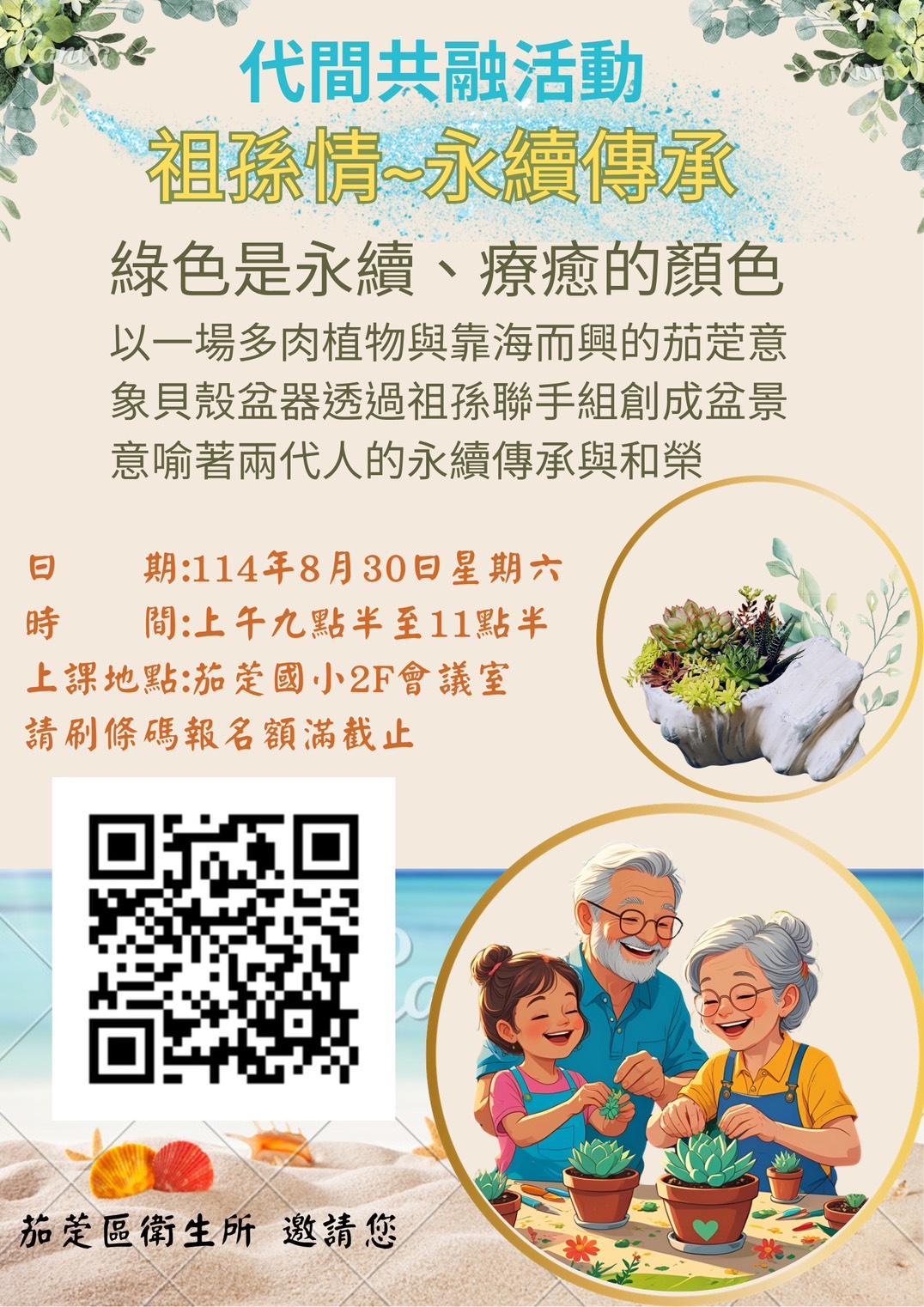 114/8/30早上9:30-11:30辦理祖孫代間共融活動,歡迎報名參加,詳如附件圖檔